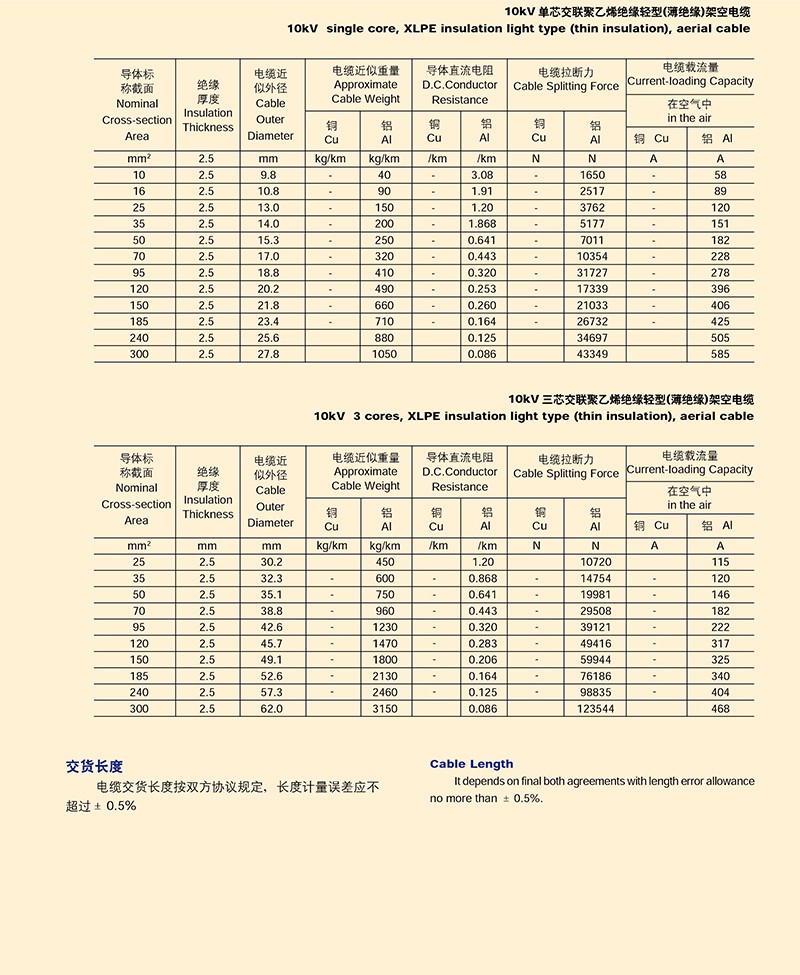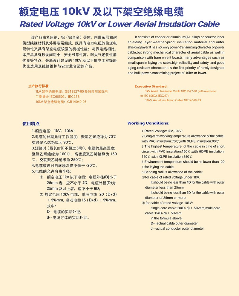 额定电压10KV以下架空绝缘电缆