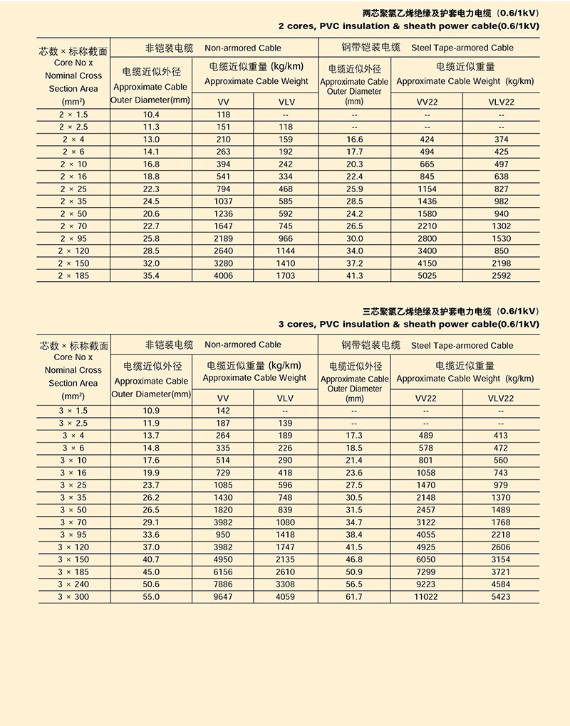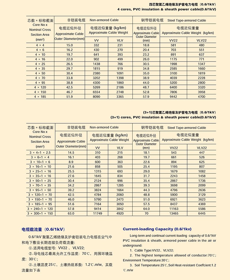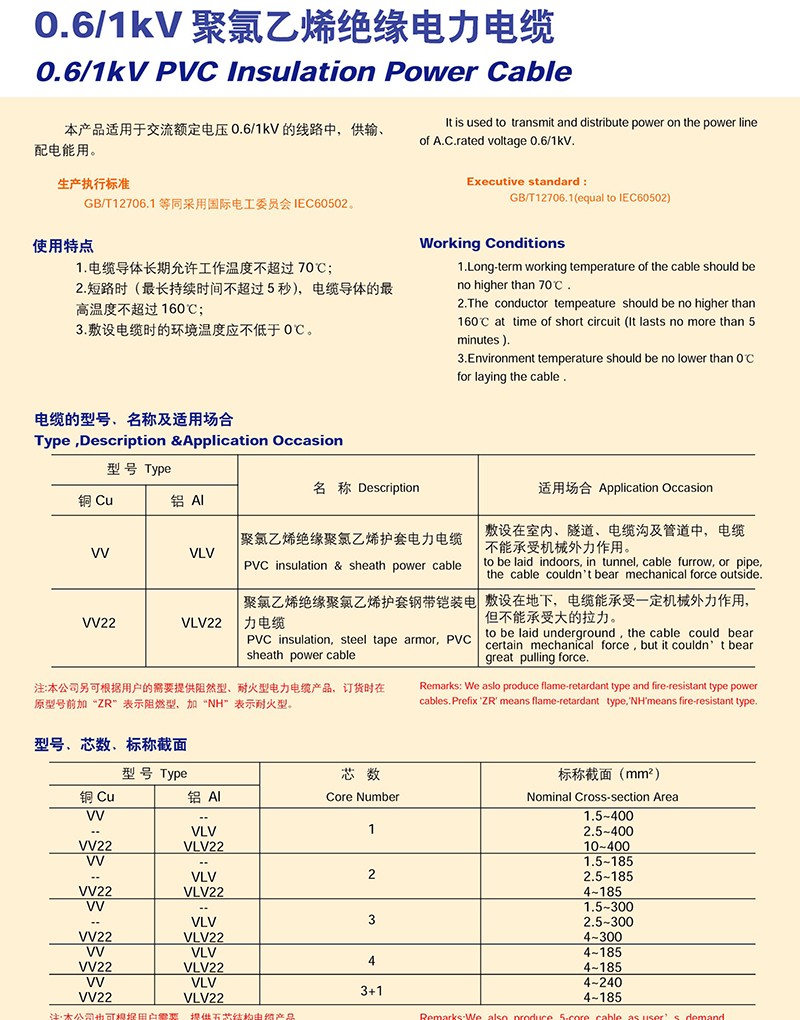0.6/1KV聚氯乙烯绝缘电力电缆