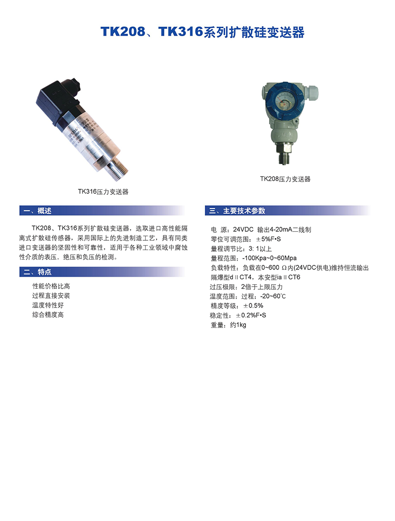 208/316系列扩散硅变送器