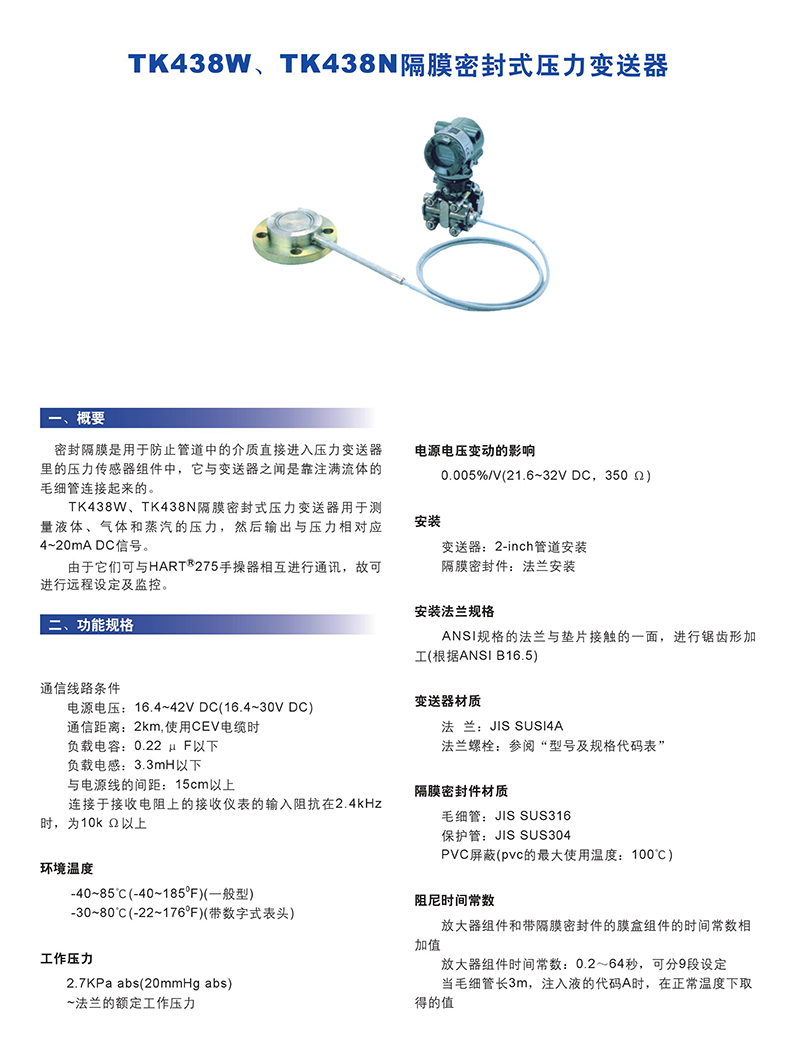438W、438N隔膜密封式压力变送器