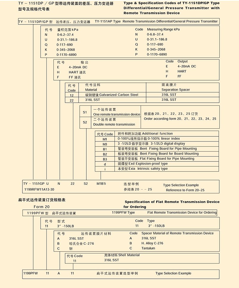 TY-1151DP/GP型带远传装置的差压/压力变送器