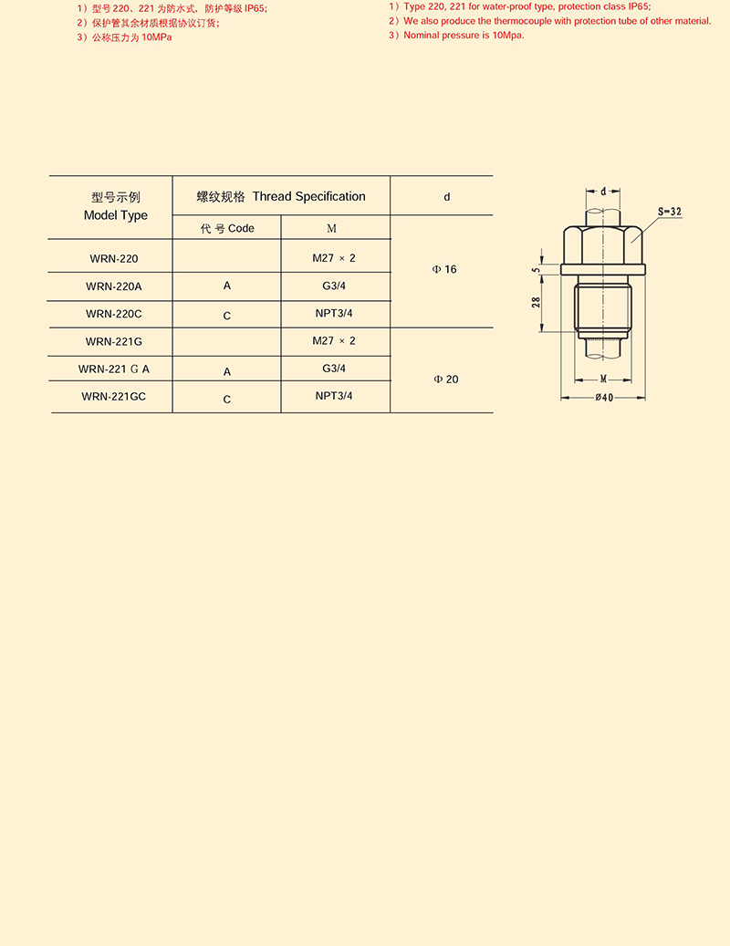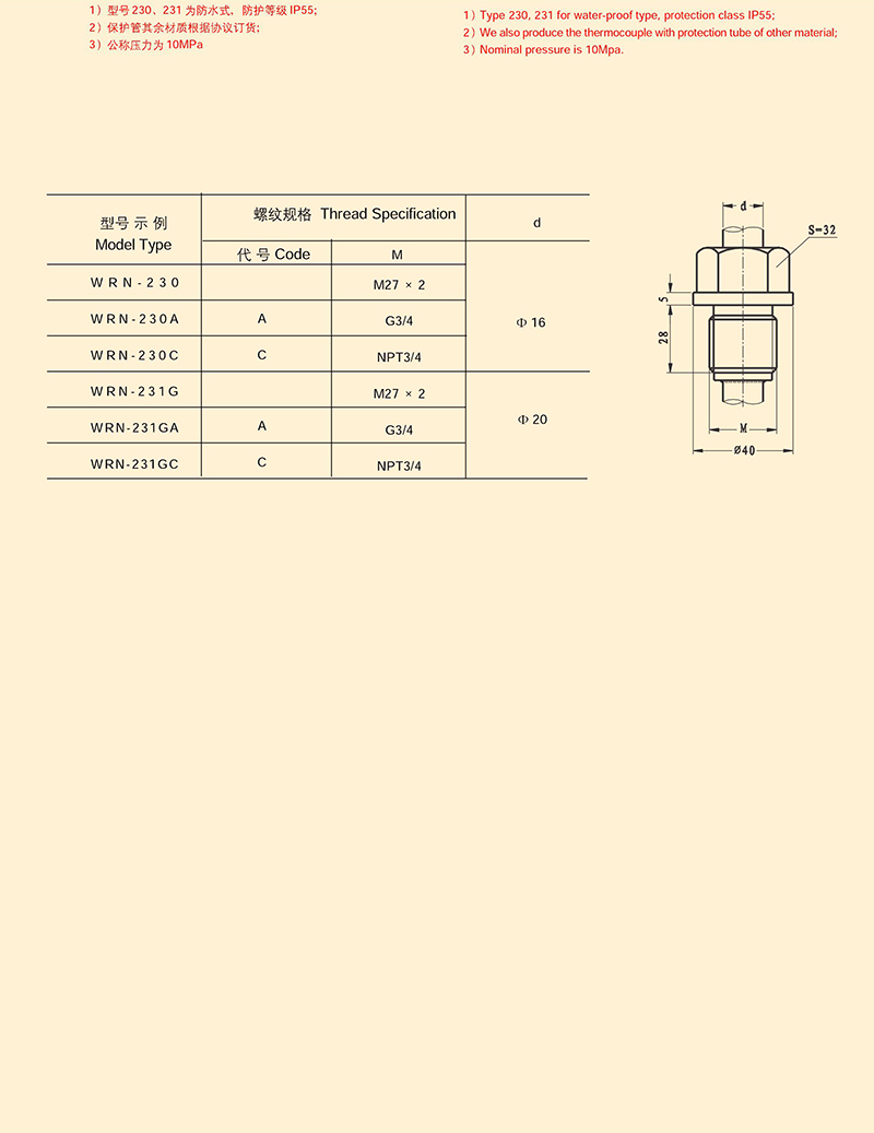 固定螺纹式热电偶